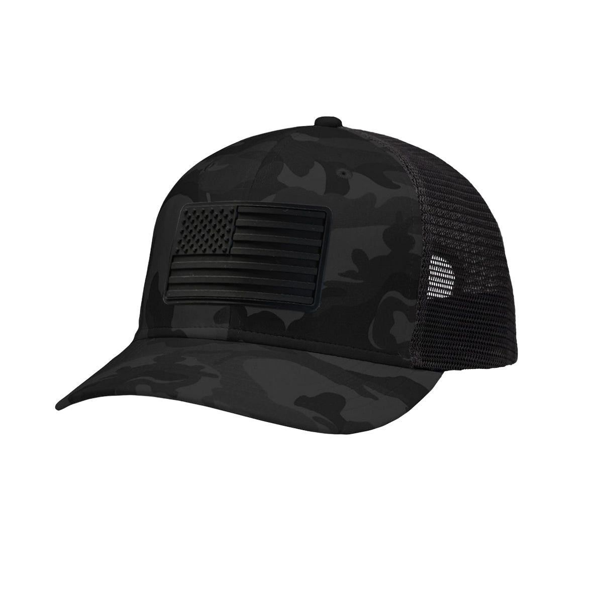 American Flag Blackout PVC Patch Structured Trucker Hat