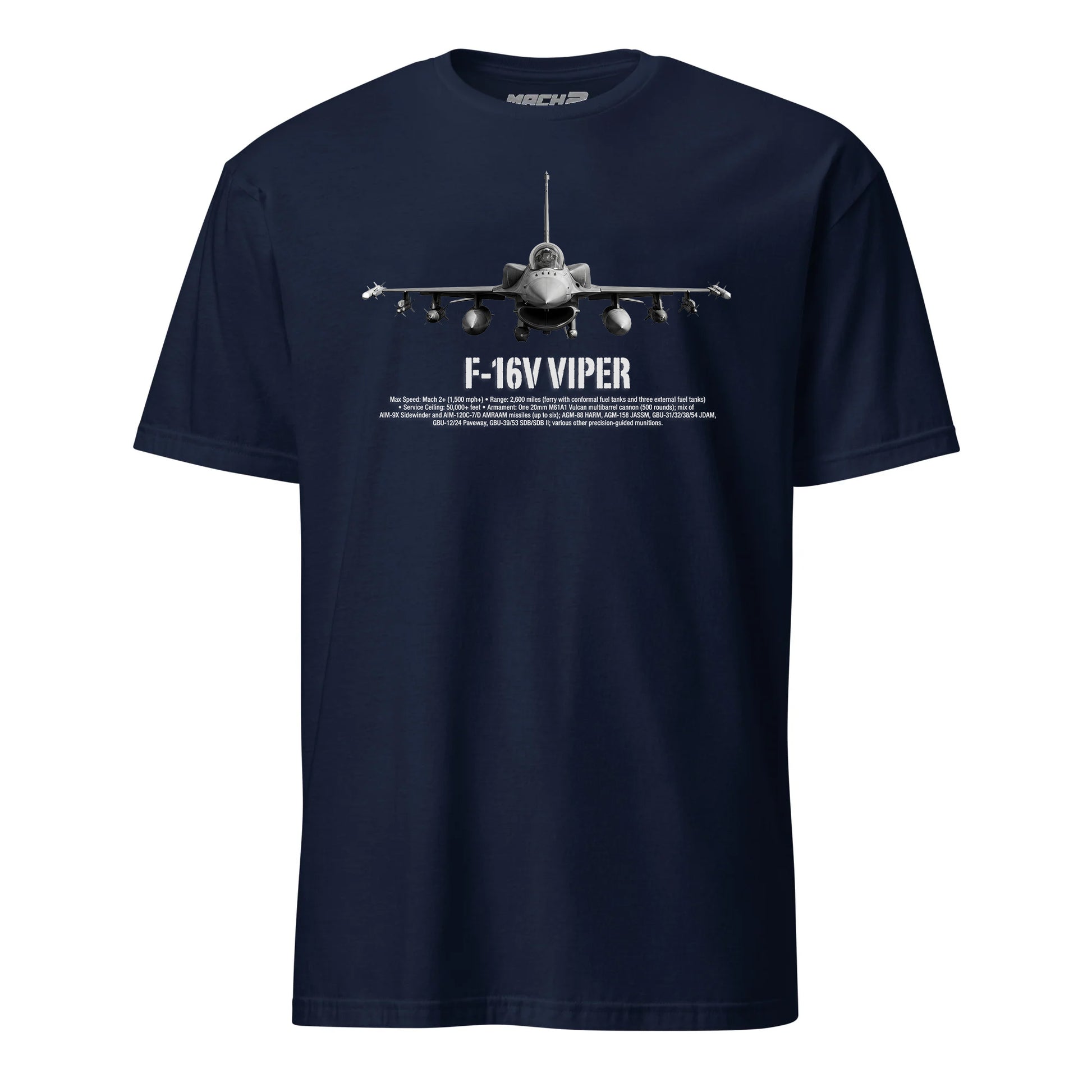 Product Details: Premium cotton blend, F-16V Viper technical specifications design, classic fit, machine washable, available in multiple sizes
